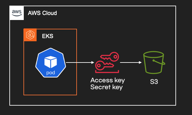 IRSA가 등장하기 전에는 쿠버네티스 관리자 또는 개발자가 IRSA와 비슷한 로직을 구현했습니다. 구현 방법은 다양하지만 구현 원리는 아래 범위에서 벗어나지 않습니다.