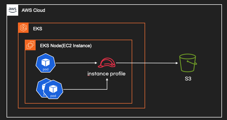 instance profile을 사용하면 코드 변경을 하지 않는 장점이 있지만 보안위험이 증가하는 단점이 있습니다. EKS node에 실행되는 모든 pod가 권한을 갖기 때문입니다.