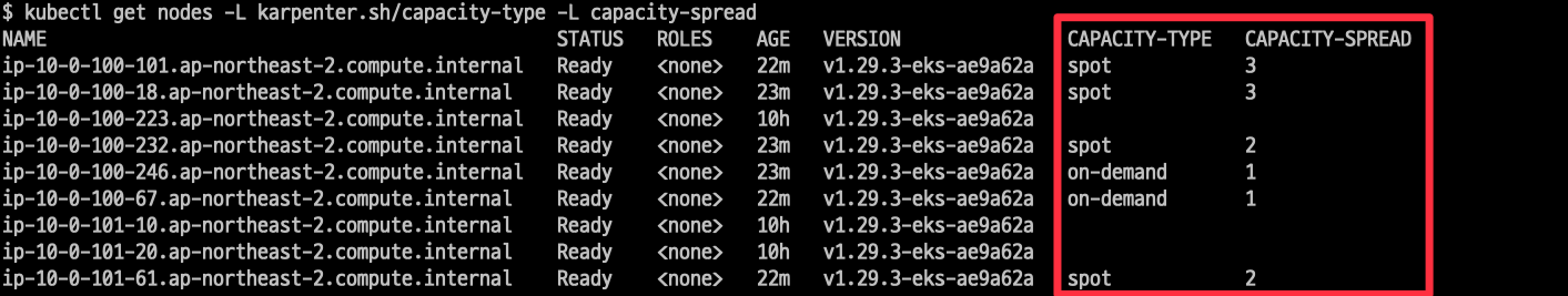 kubectl get nodes -L karpenter.sh/capacity-type -L capacity-spread