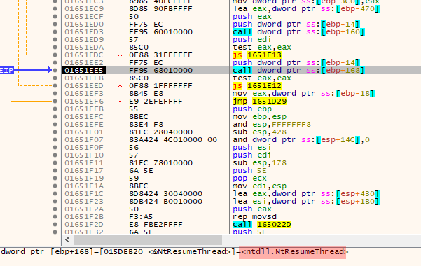 tobt를 NtResumeThread를 만날 때 까지 실행합니다.