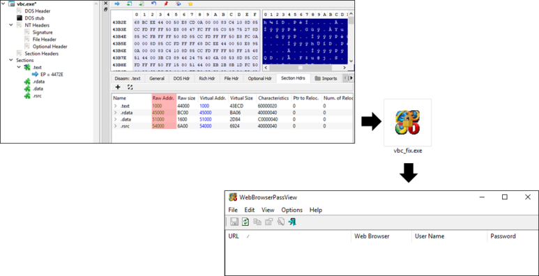PE포맷을 복원하고 실행하면 NirSoft의 WebBroswerPassView가 실행됩니다. 즉, 인젝션된 코드는 WebBroswerPassView이었습니다.