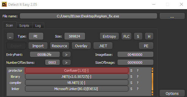 Detect It Easy로 복원한 파일을 확인하면 Confuserex프로텍터로 소스코드가 보호되어 있다는 것을 알 수 있습니다.