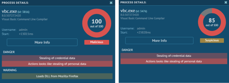 마찬가지로 regasm.exe가 실행한 vbc.exe프로세스도 윈도우 정상프로세스이지만 애니런 샌드박스에서 정보탈취 행위를 발견했습니다. vbc.exe프로세스도 코드 인젝션을 당하여 악성행위를 수행한 것으로 결론지을 수 있습니다.