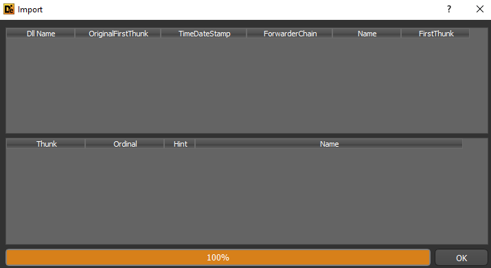 파일을 추출했지만 PE포맷 일부가 잘못 설정되어 있어 IAT가 보이지 않습니다. 악성코드를 동적분석 하기 위해서 PE포맷 일부분을 수정해야 합니다.