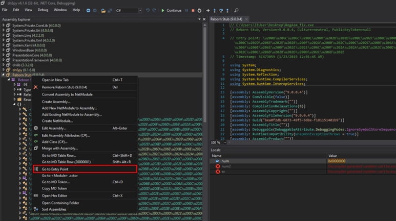 dnspy에서 프로젝트 오른쪽 버튼을 클릭하고 Go to EntryPoint를 클릭합니다.
