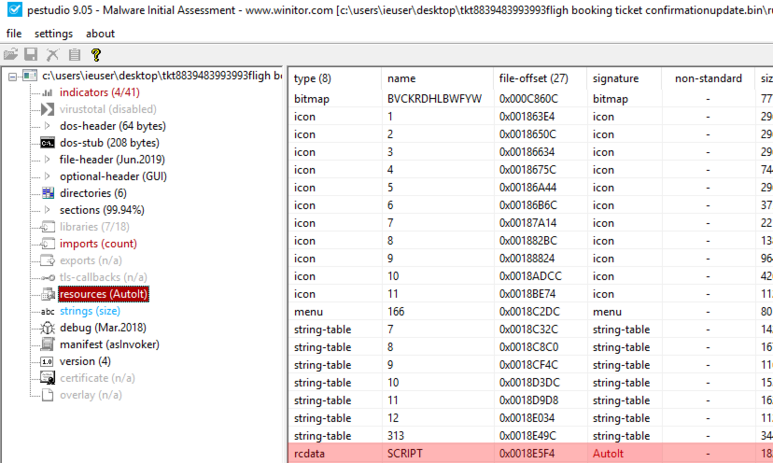 autoit 스크립트는 리소스 섹션에 존재하고 실행 중에 디컴파일 됩니다.