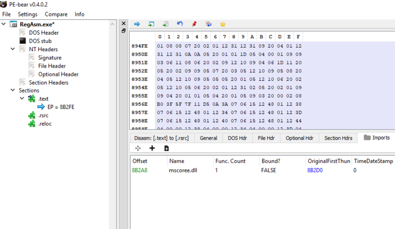 PE-Bear를 사용해서 PE포맷을 복원합니다.