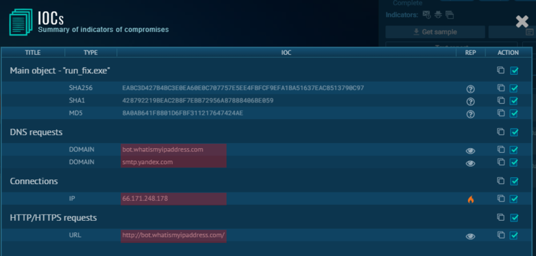 bot[.]whatismyipaddress[.]com과 smtp[.]yandex[.]com에 DNS질의가 발견됩니다.