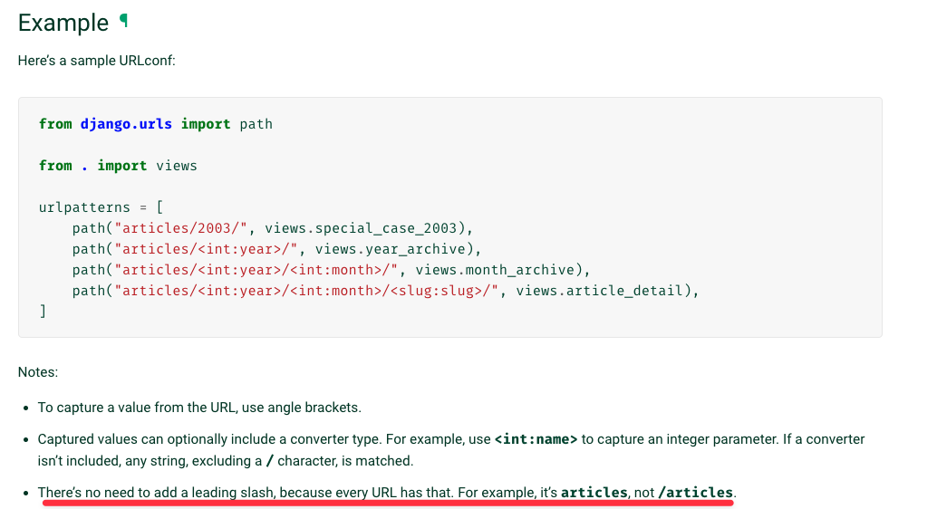 django에서는 '/'를 지정하려면 빈값(empty string)으로 설정해야 합니다.