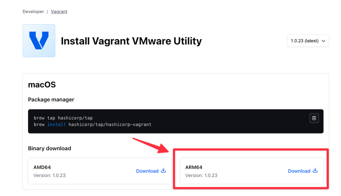 인증서는 vagrant vmware utility를 설치하면 자동으로 생성됩니다. vagrant vmware utility는 공식홈페이지에서 바이너리를 다운로드 받아 설치합니다.