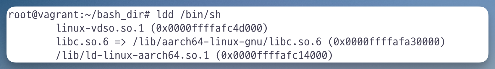 cp /lib/aarch64-linux-gnu/libc.so.6 /root/bash_dir/lib/aarch64-linux-gnu/