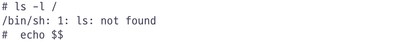 chroot로 root 디렉터리를 변경하면 ls명령어를 실행하지 못합니다. sh실행파일만 준비했고 ls실행파일은 준비하지 않았기 때문입니다.