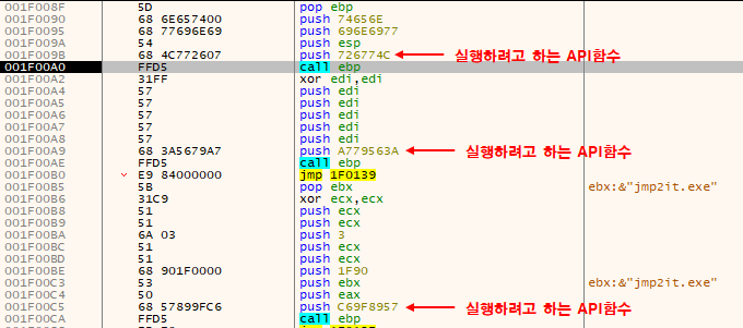 쉘코드가 사용하는 API함수는 [그림 27]과 같습니다.
