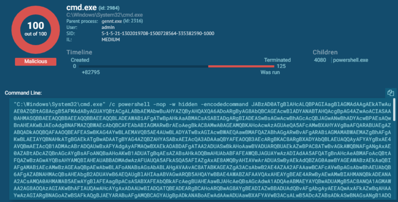 cmd.exe가 base64인코딩된 문자열을 실행하면서 코볼트 스트라이크가 실행됩니다. base64인코딩된 문자열은 애니런샌드박스에서 추출할 수 있습니다.