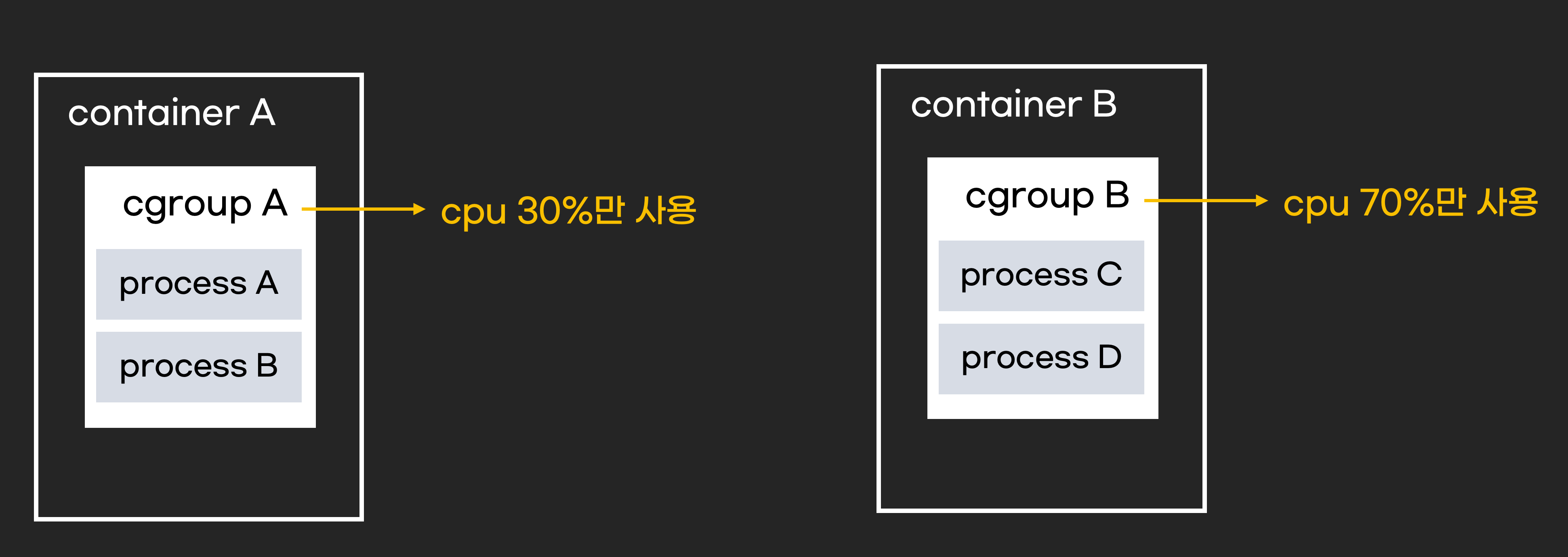 컨테이너는 프로세스이기 때문에, 컨테이너 또한 cgroup을 사용하여 cpu를 제한합니다.