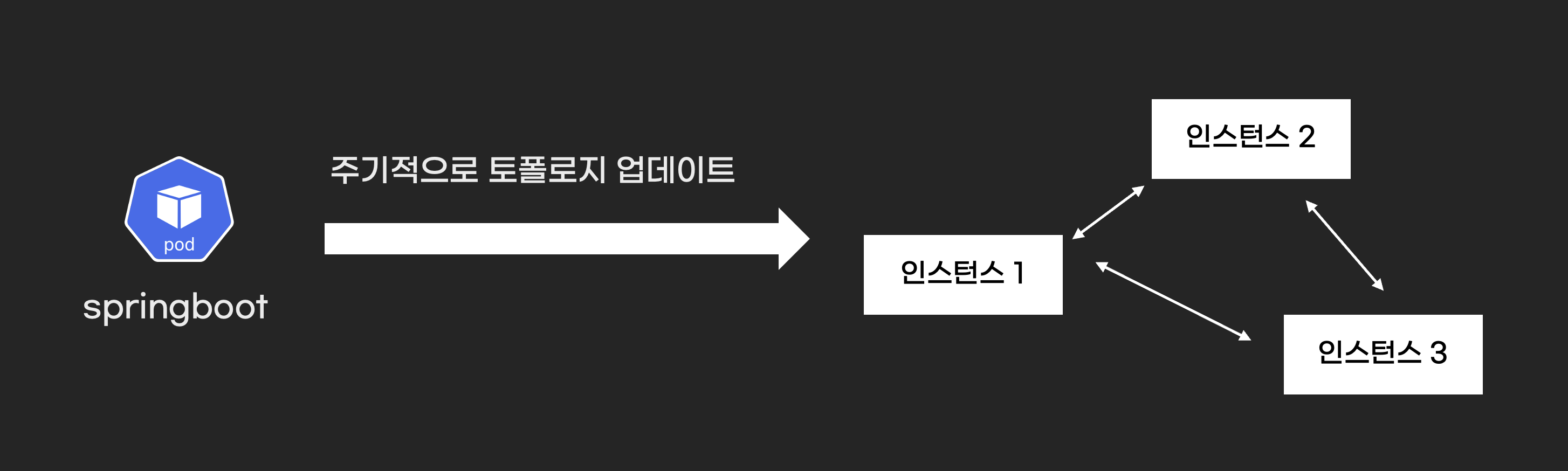 redis 클러스터는 메시 토폴로지 덕분에 변경된 인스턴스 정보를 모든 인스턴스가 압니다. 예를 들어 인스턴스 IP가 변경되면 클러스터 인스턴스(노드)정보가 업데이트 됩니다.