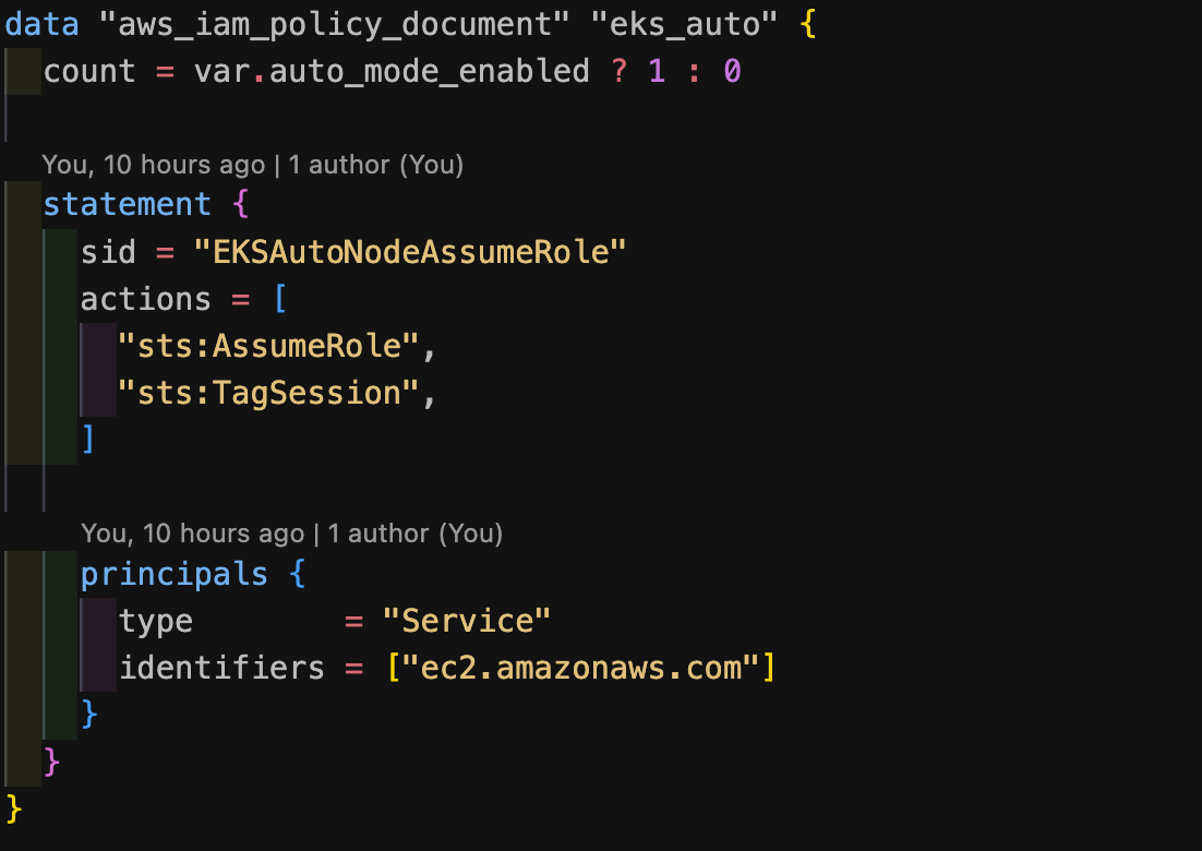 저는 테라폼으로 새로운 EKS 클러스터에 Auto Mode를 설치했습니다. AWS provider 5.79.0 이상 부타 EKS Auto Mode를 사용할 수 있습니다. 테라폼 코드 수정은 AWS가 관리하는 테라폼 모듈의 github pull request를 참조하면 좋습니다.