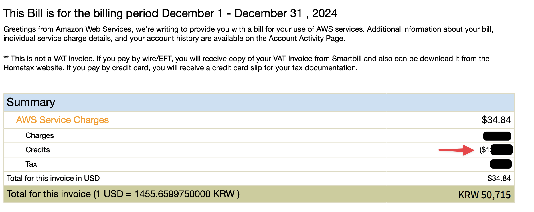 크레딧에 자세한 내용은 AWS 크레딧 문서를 참고해주세요.