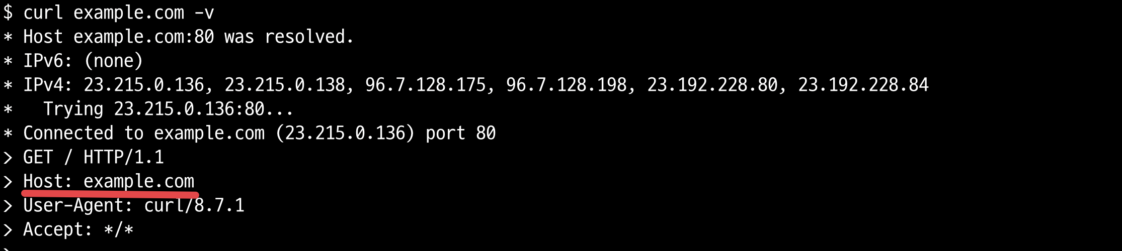 - 7계층 프록시(예: nginx)에서는 `-H "Host: example.com"` 옵션을 사용하여 HTTP 헤더의 Host 값을 변경