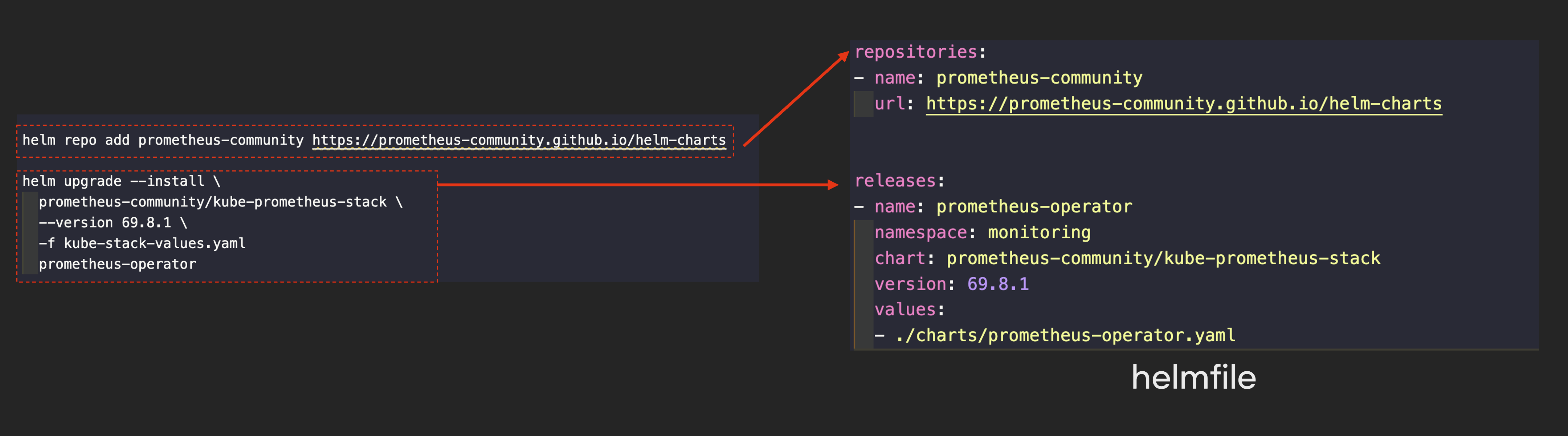 여러 Helm 차트를 한 번에 관리하고 릴리즈(배포)하는 도구입니다.