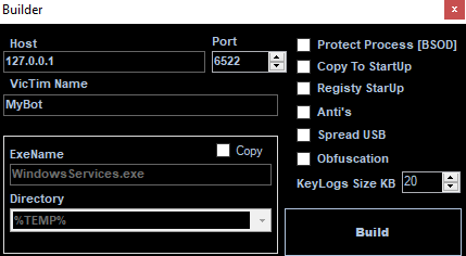 njrat는 서버와 클라이언트 분류됩니다. 서버는 클라이언트를 생성하는 빌더와 연결제어로 구성됩니다. 빌더는 체크박스로 악성행위를 선택하여 클라이언트를 생성합니다.