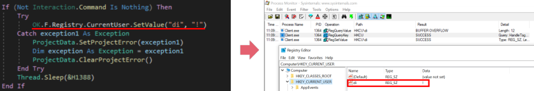 행위분석에서 환경변수 설정을 관찰하려면 레지스트리 활동을 찾으면 됩니다.