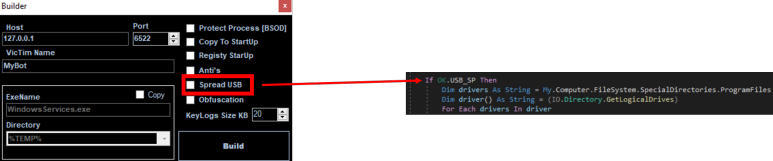 njrat를 USB를 포함한 각 논리 드라이버 최상단에 복사(이름:tools.exe)합니다. USB에 복사할 때 njrat가 자동 실행되도록 설정합니다.