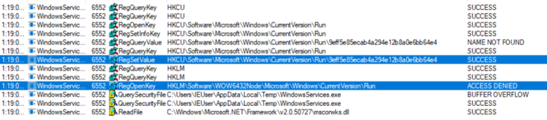 HKLM경로의 지속 메커니즘 설정은 실패합니다.