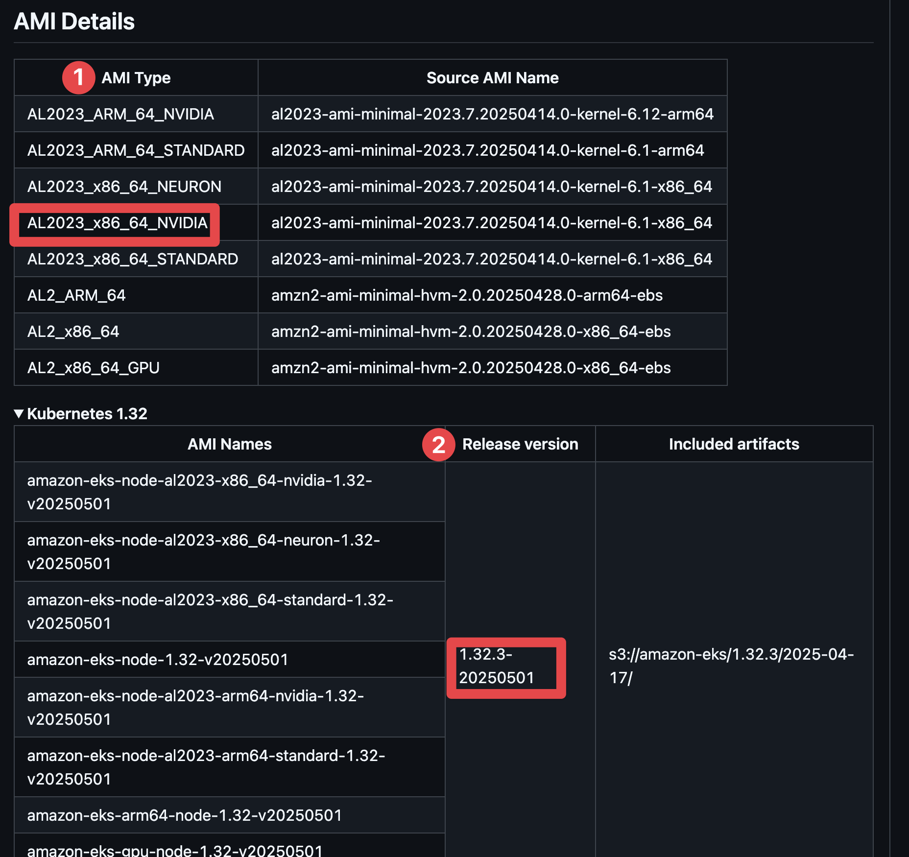 # AL2023, nvidia 벤더, EKS 1.32버전