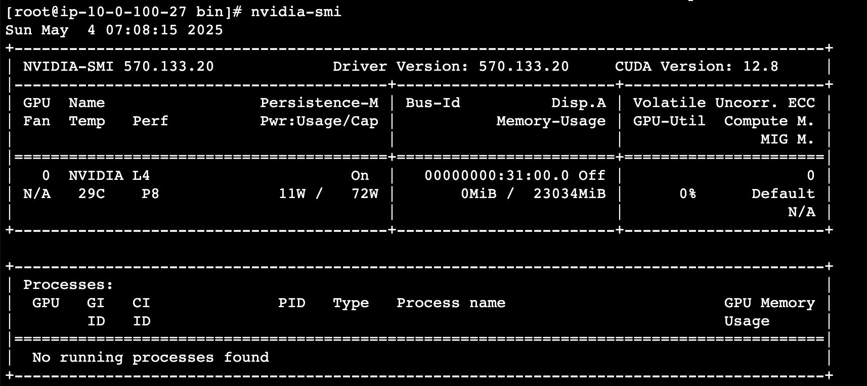 예로 nvidia GPU optimized AMI를 사용한 EKS 노드에서는 nvidia GPU드라이버가 설치되어 있습니다. 따라서 nvidia-smi명령어를 별다른 설치 없이 바로 사용할 수 있습니다.