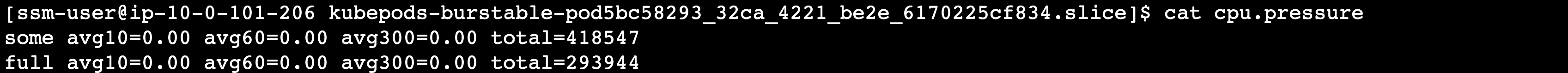 cpu 쓰로틀링이 걸리면 cpu.pressure에 메트릭이 남습니다. 그리고 cAdvisor가 cpu.pressure 메트릭을 수집합니다. 아래 예시는 cpu 쓰로틸링이 없을때 cpu.pressure 메트릭은 0.00으로 보입니다.