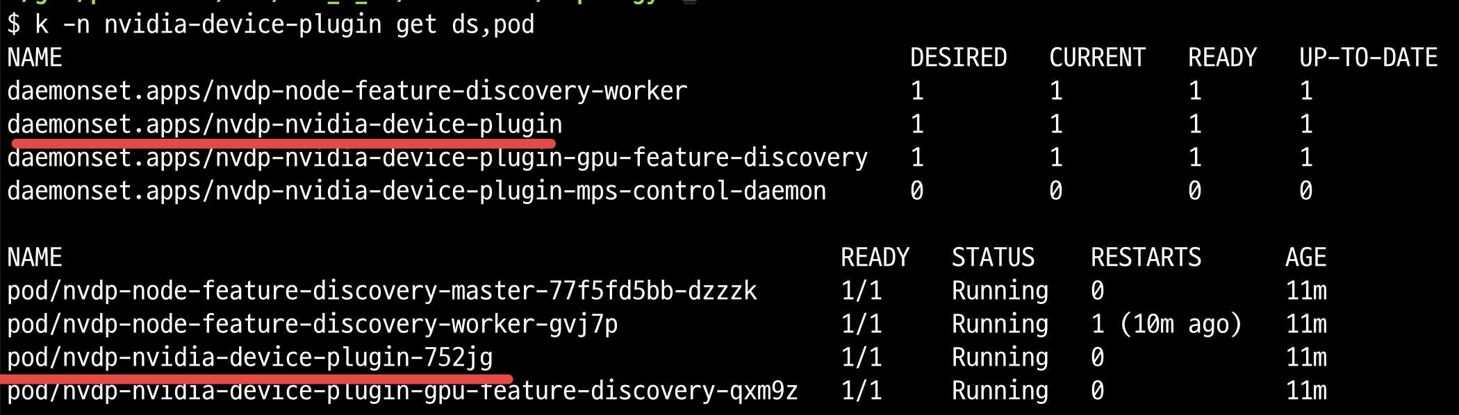 helm upgrade -i nvdp nvdp/nvidia-device-plugin \
