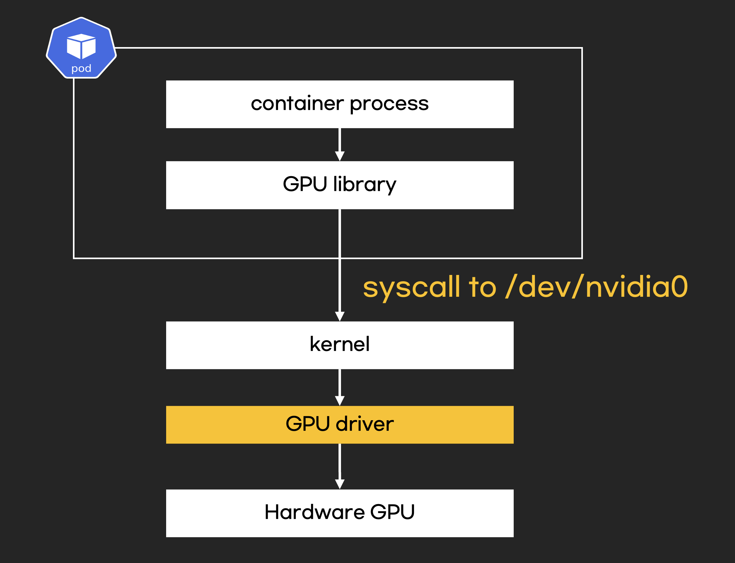 pod는 결국 운영체제 입장에서 프로세스이기 때문에, pod가 GPU를 사용한다는 것은 프로세스가 GPU를 사용한다는 것과 같습니다. 결국, pod가 GPU를 사용하는 원리는 프로세스가 GPU를 사용하는 원리와 동일합니다. 복잡해 보이는 Kubernetes GPU 설정도 결국 이 기본 원리를 컨테이너 환경에 적용한 것에 불과합니다.