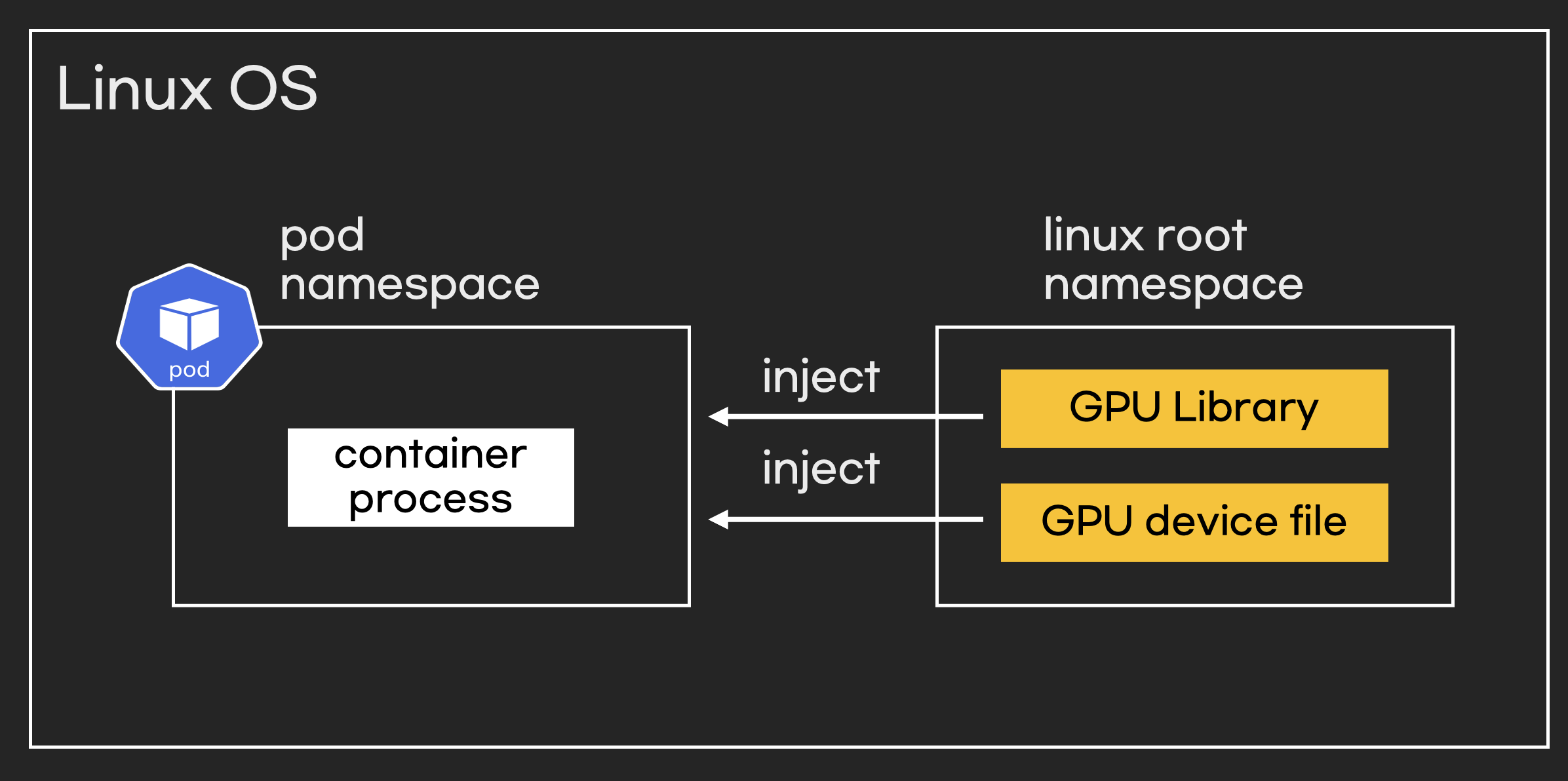 OS 설정은 GPU 드라이버 설치와 GPU 라이브러리 설치, GPU디바이스 파일이 있는지 확인하는 것입니다. pod에서 실행되는 컨테이너는 결국 프로세스이기 때문에 프로세스가 GPU를 실행하는 원리가 그대로 적용됩니다.