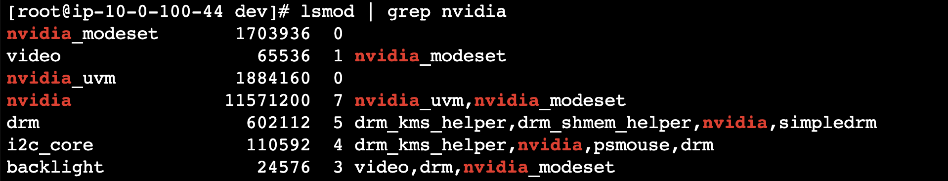 lsmod | grep nvidia