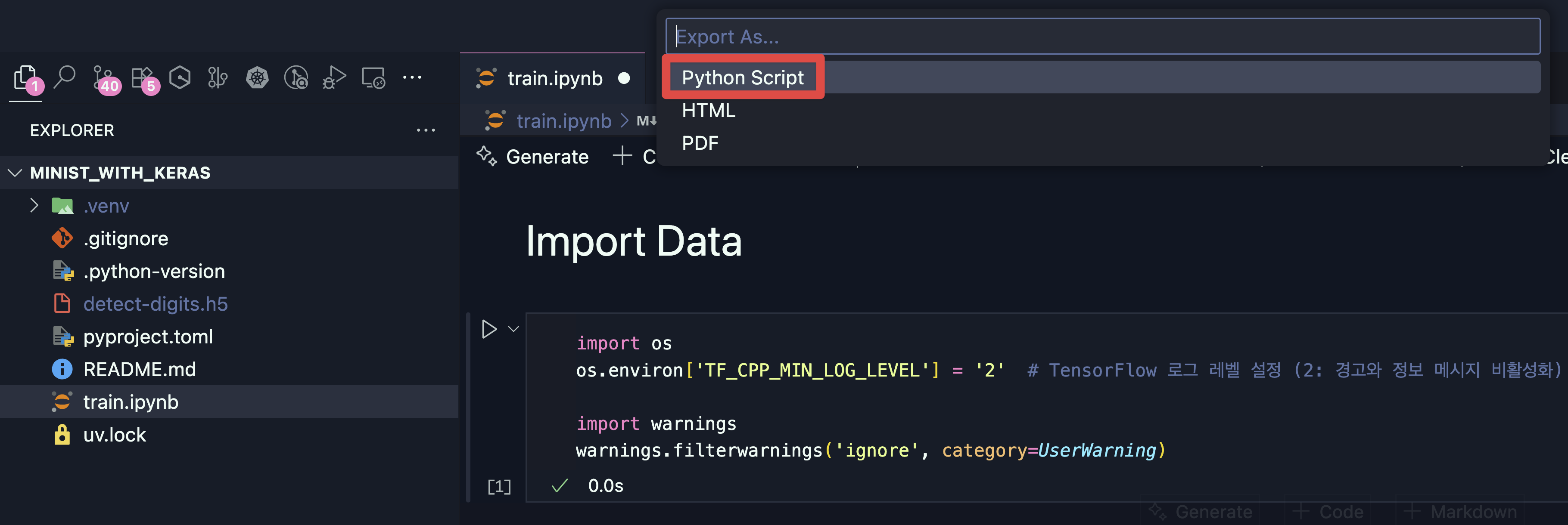 이 글은 vscode에서 notebook(ipynb) 코드를 파이썬 코드로 변환하는 방법을 설명합니다.