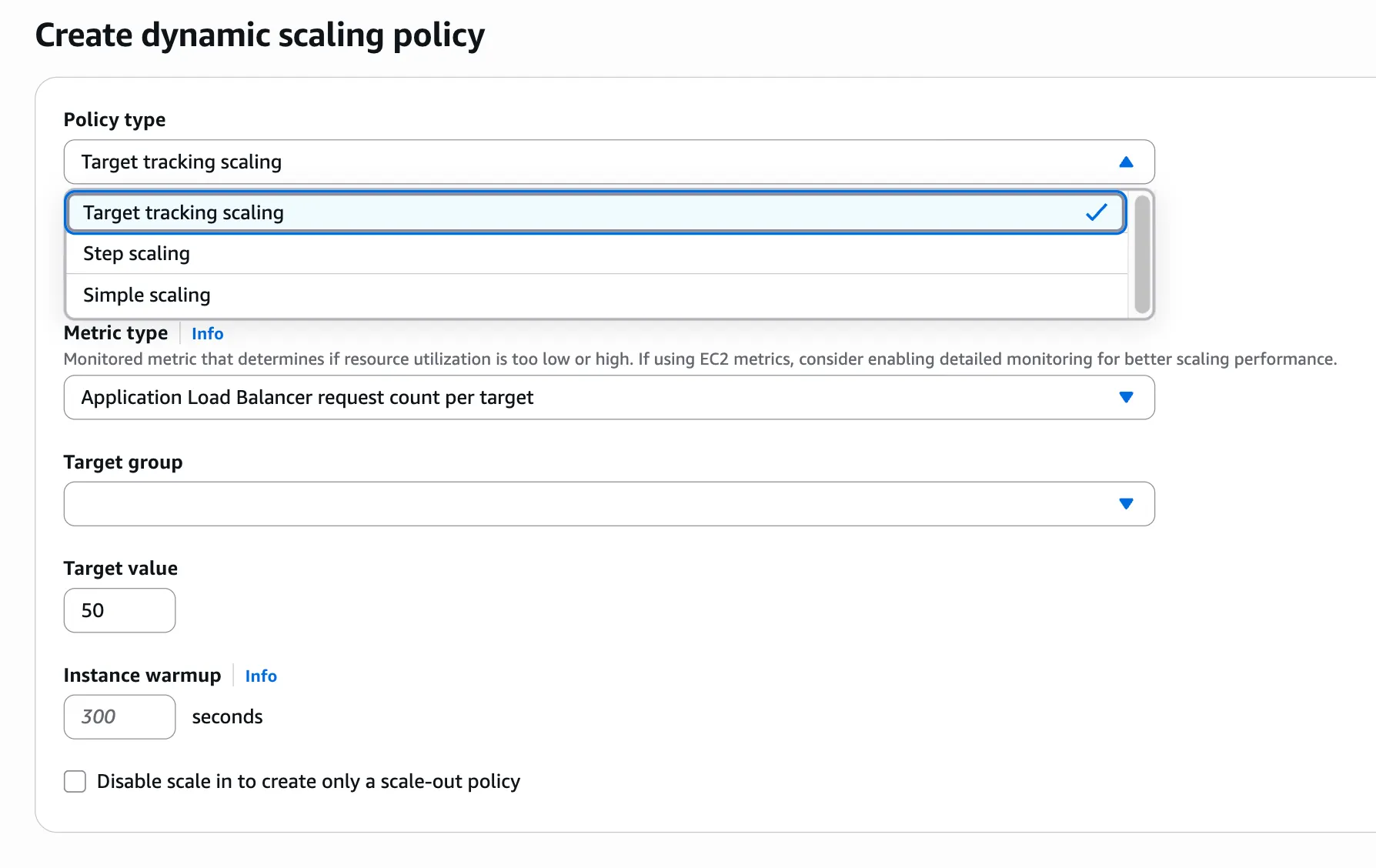 - Dynamic Scaling의 3가지 정책(Target tracking, Step scaling, Simple scaling)의 차이점은 무엇인가요?