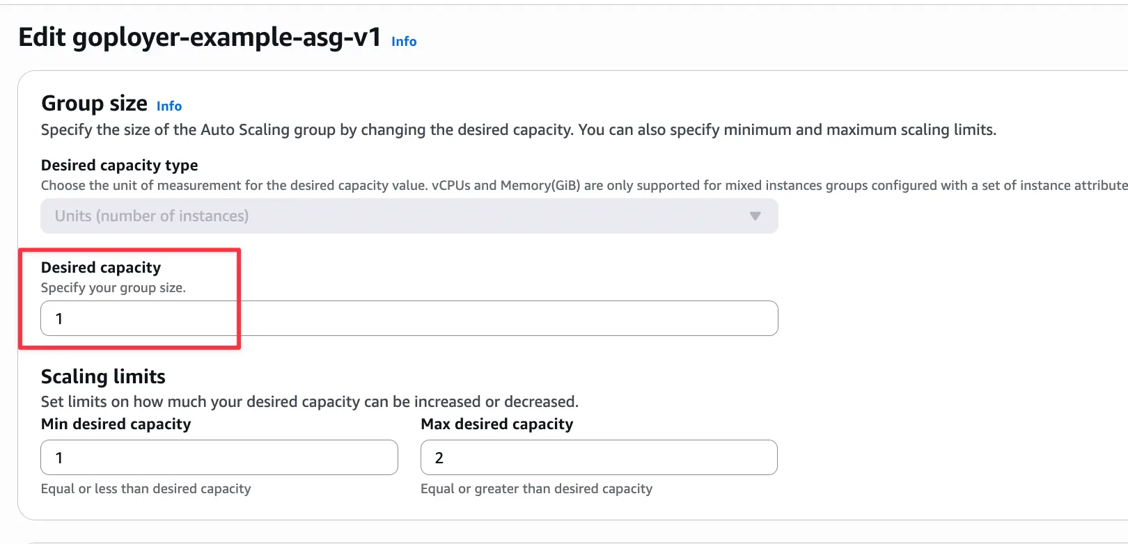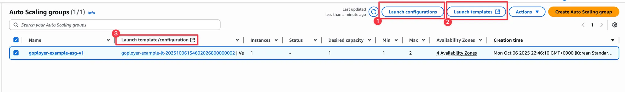 - Desired capacity: 현재 EC2 인스턴스 개수