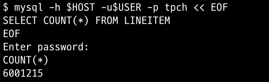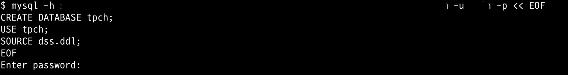 mysql -h $HOST -u$USER -p tpch << EOF