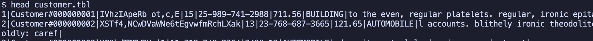 tbl 파일들은 아래처럼 컬럼이 "|"로 구분되어 있습니다.