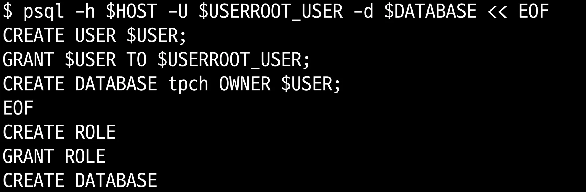 psql -h $HOST -U $ROOT_USER -d tpch << EOF