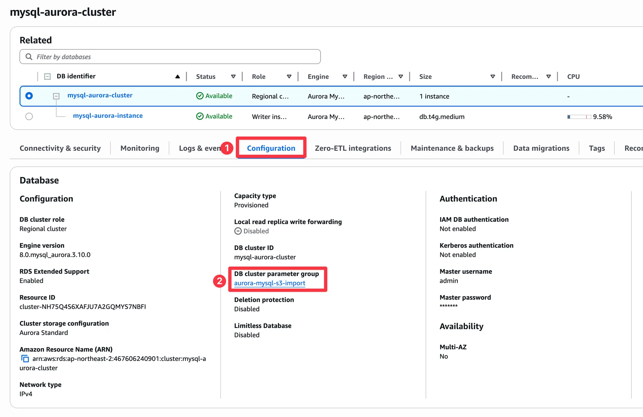mysql aurora는 import, export에 사용하는 IAM role이 한개만 필요합니다.
