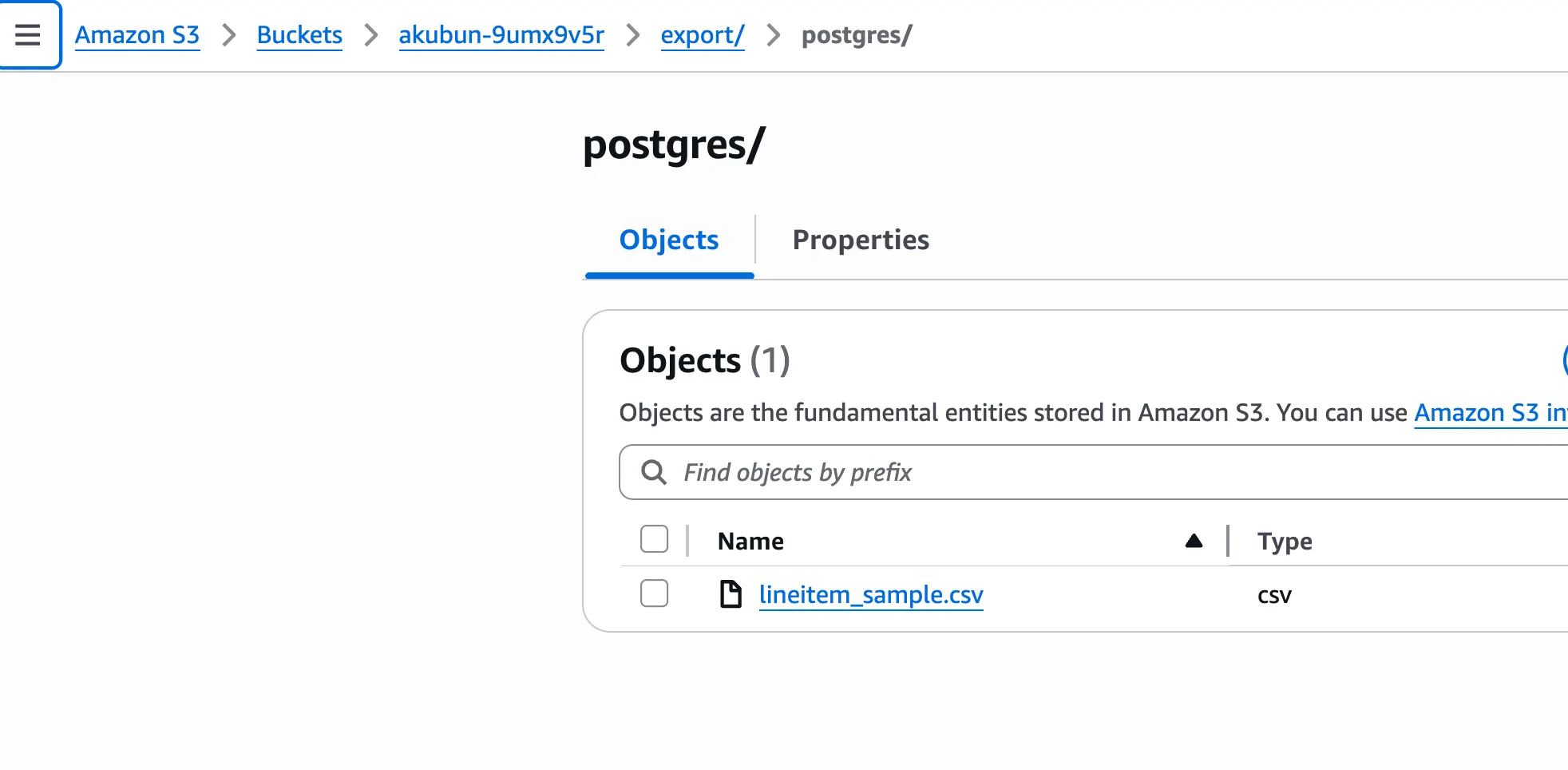 s3에 postgres가 생성한 csv파일이 보입니다.