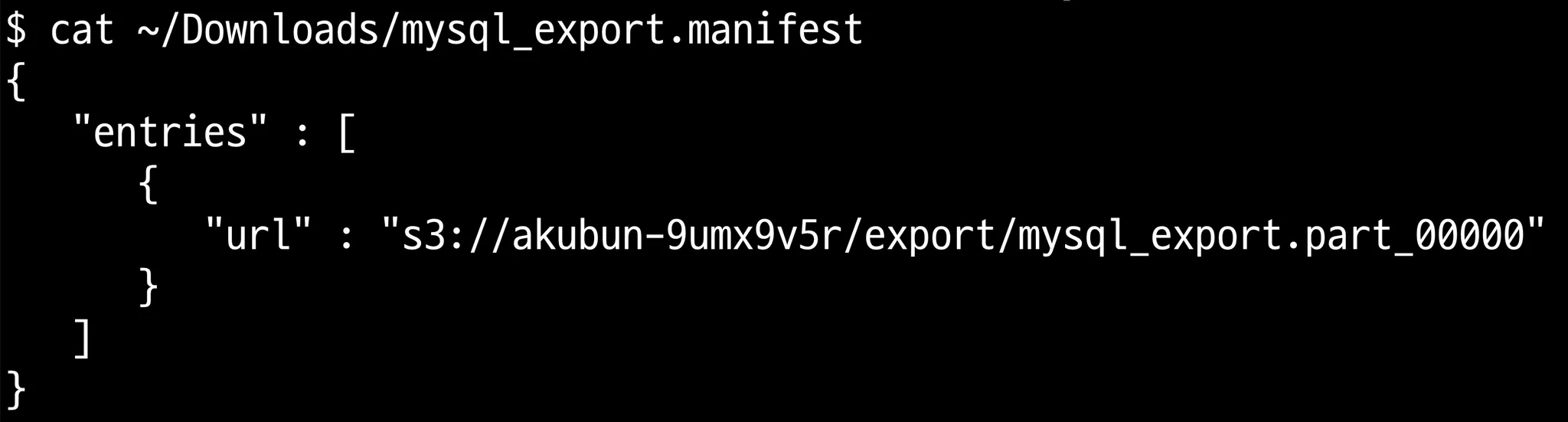 BUCKET="s3://akubun-9umx9v5r/export/mysql_export"