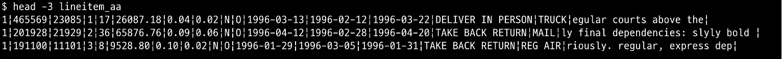 && for file in lineitem_*; do mv "$file" "${file}.csv"; done