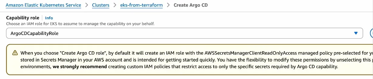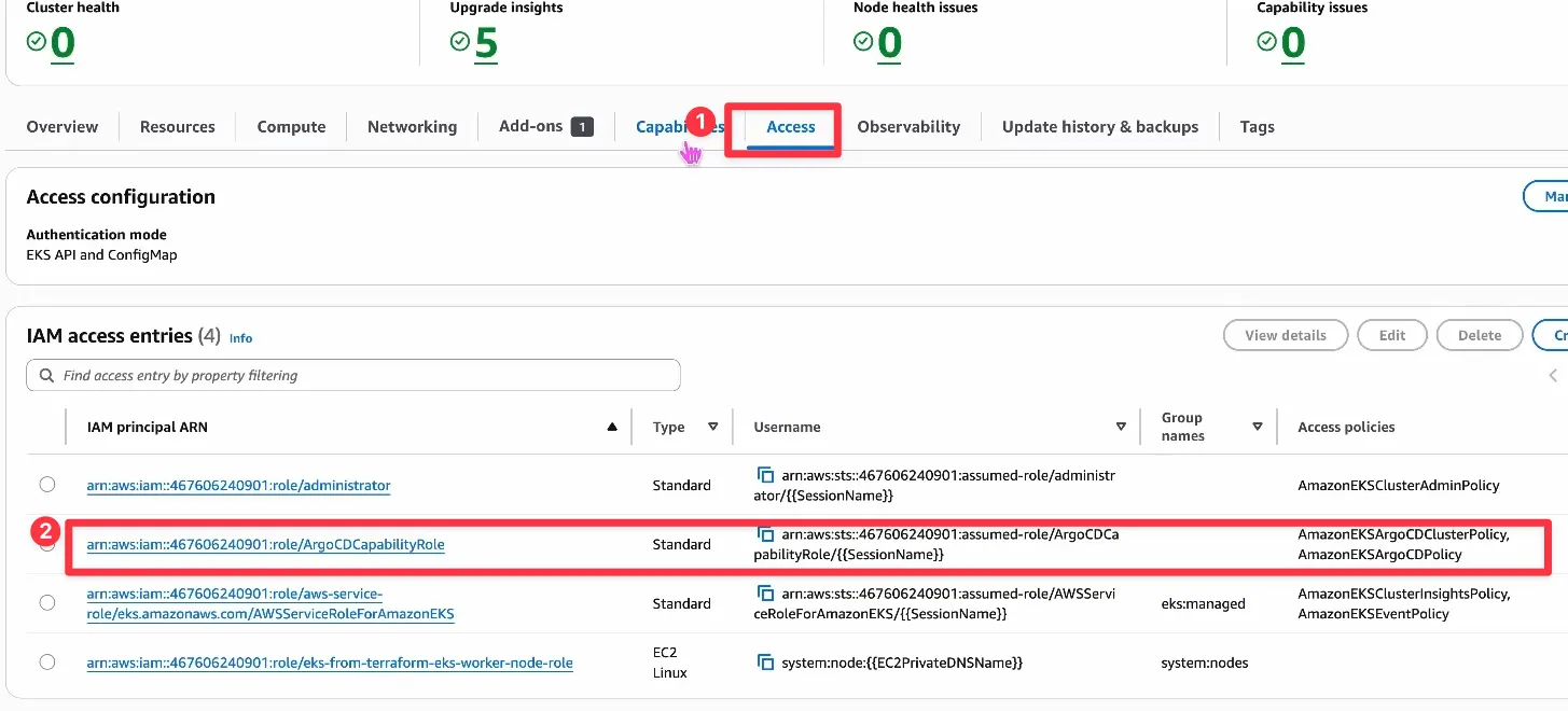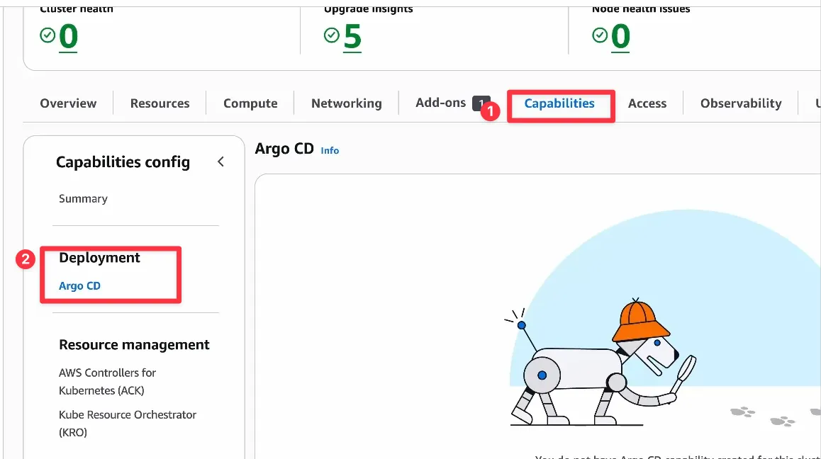 ArgoCD Capabilities는 Capabilities에서 생성할 수 있습니다.