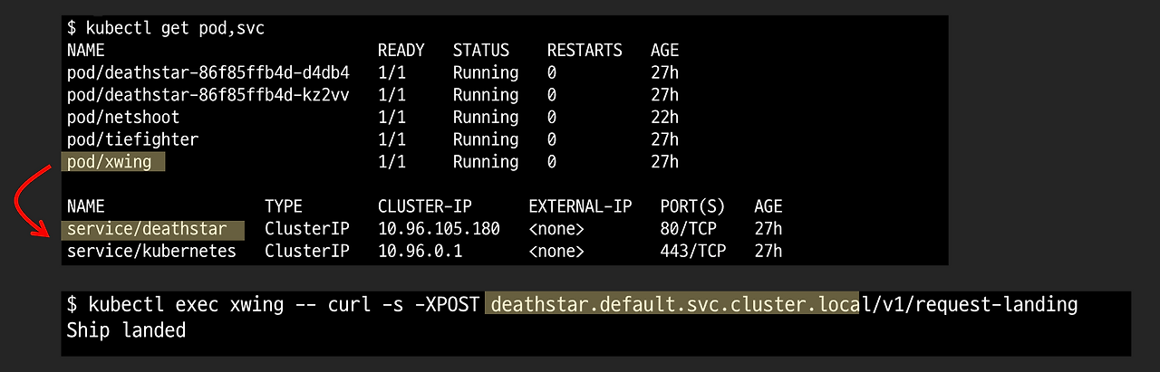 kubectl exec xwing -- curl -s -XPOST 10.244.1.130/v1/request-landing