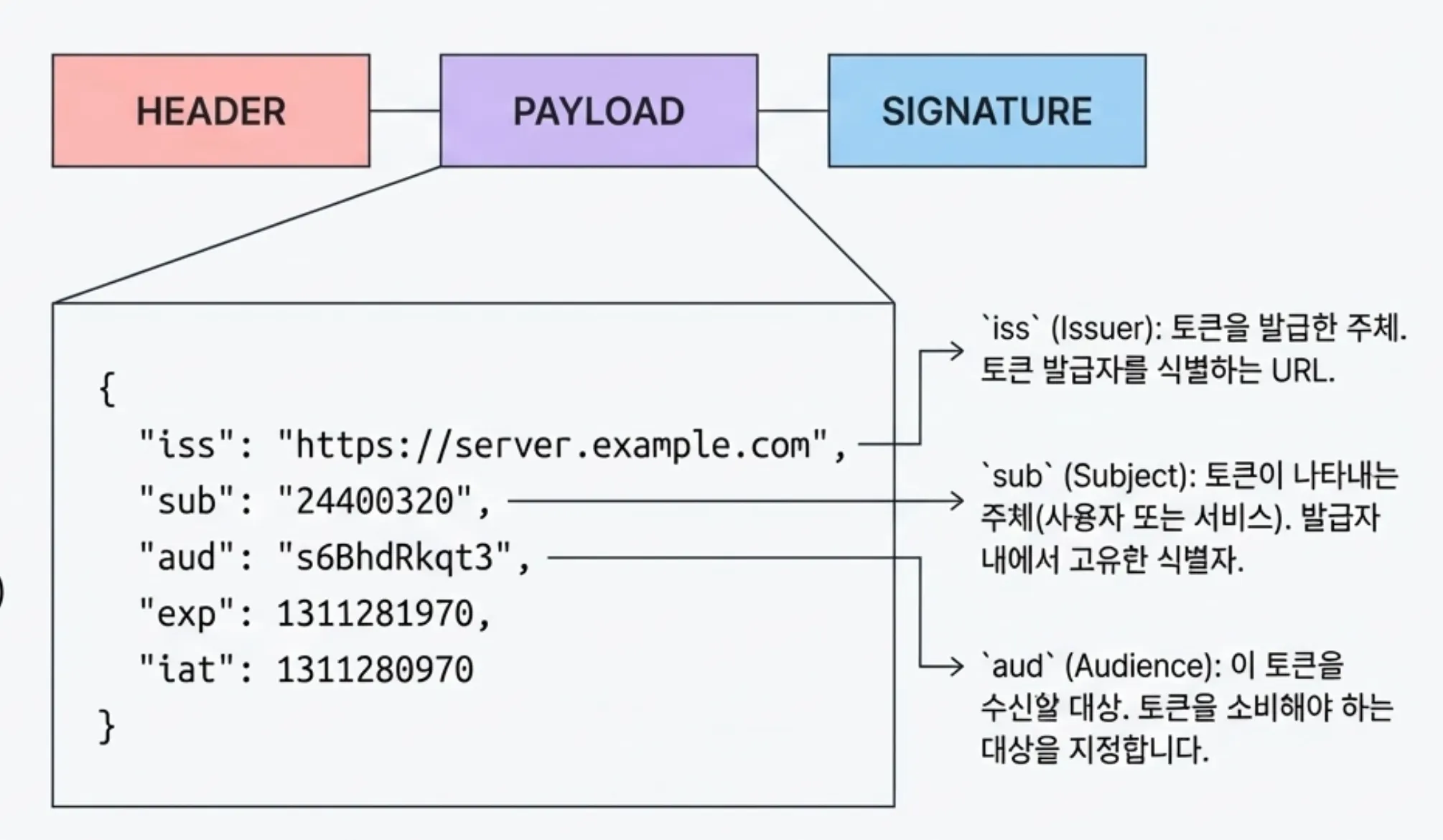 Client는 ID 토큰(JWT)을 검증할 책임이 있습니다. 정말 올바른 authorization server가 발급한 ID 토큰인지 확인해야 하기 때문입니다. JWT를 분석하여 iss(발급자), aud(청중), exp(만료 시간) 등의 클레임이 맞는지 확인해야 합니다.